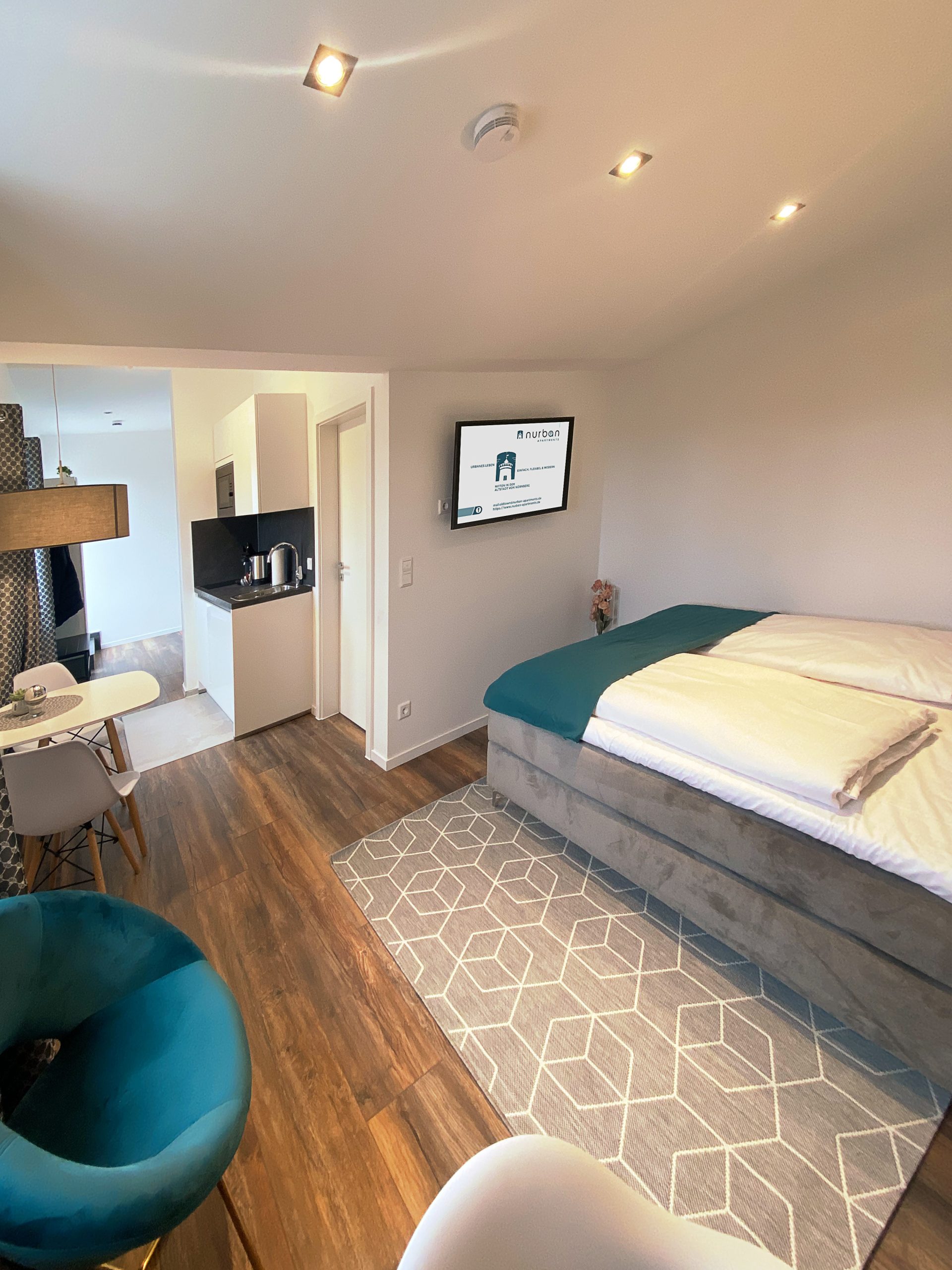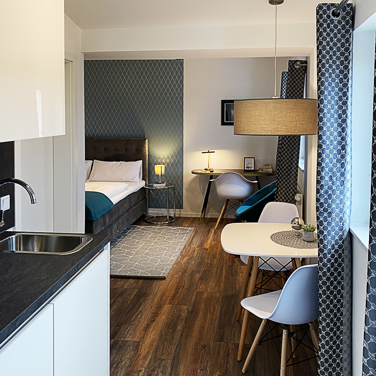 Auf 26-35 m² haben wir alles für einen komfortablen Aufenthalt vorbereitet. Die Wohnung verfügt über eine praktische Pantryküche und ein Queen-Size-Bett (160x200), das zum Entspannen einlädt.